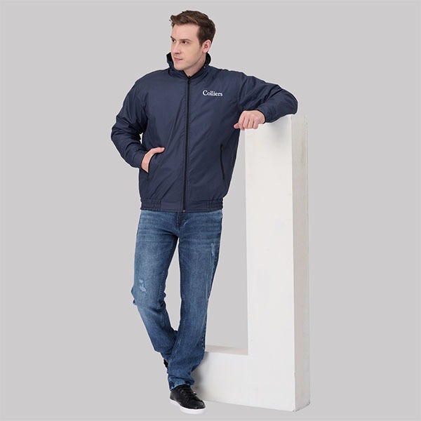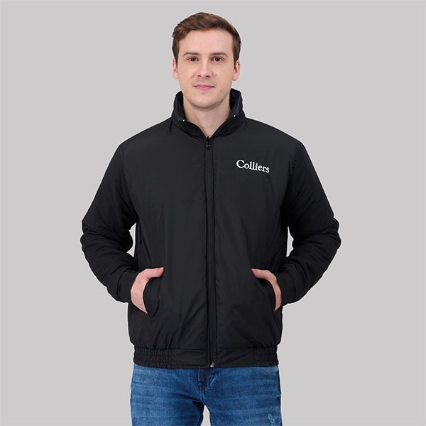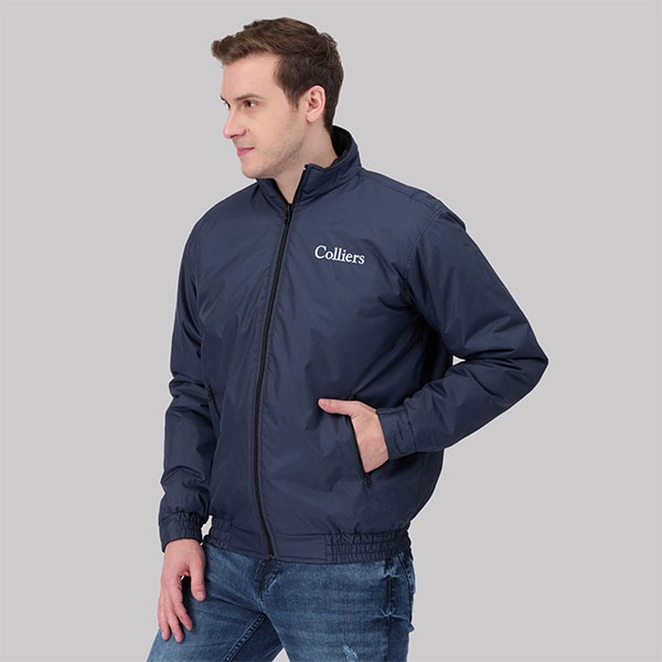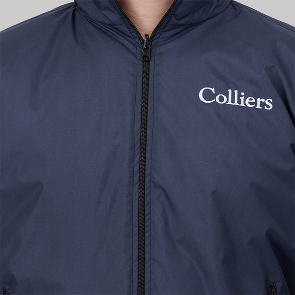 WATER RESISTANT, BLUE AND BLACK REVERSIBLE JACKETS WITH COLLIERS LOGO EMBROIDERED ON BOTH SIDES